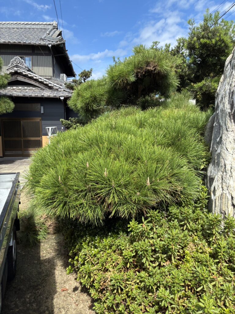 この時期剪定の依頼が多く特に松、マキの木の剪定依頼が多くあります。どちらも針葉樹で針葉樹は葉が混んで枯れてしまうとその枯れた枝からはもう芽が出てこなくなります。そのため定期的に剪定(透かし剪定)を行い日が当たり、風通りが良い状態にすることが望ましいため年一度は手入れをすることをお勧めいたします。また松は剪定に非常に手間がかかる樹種でもあります。なぜなら通常の鋏で切るだけの剪定以外の工程が(葉むしり等)あるためです。しかし古葉をむしらず鋏だけで行う剪定でも対応できるため価格も含めご相談させて頂きます。宜しくお願いします。