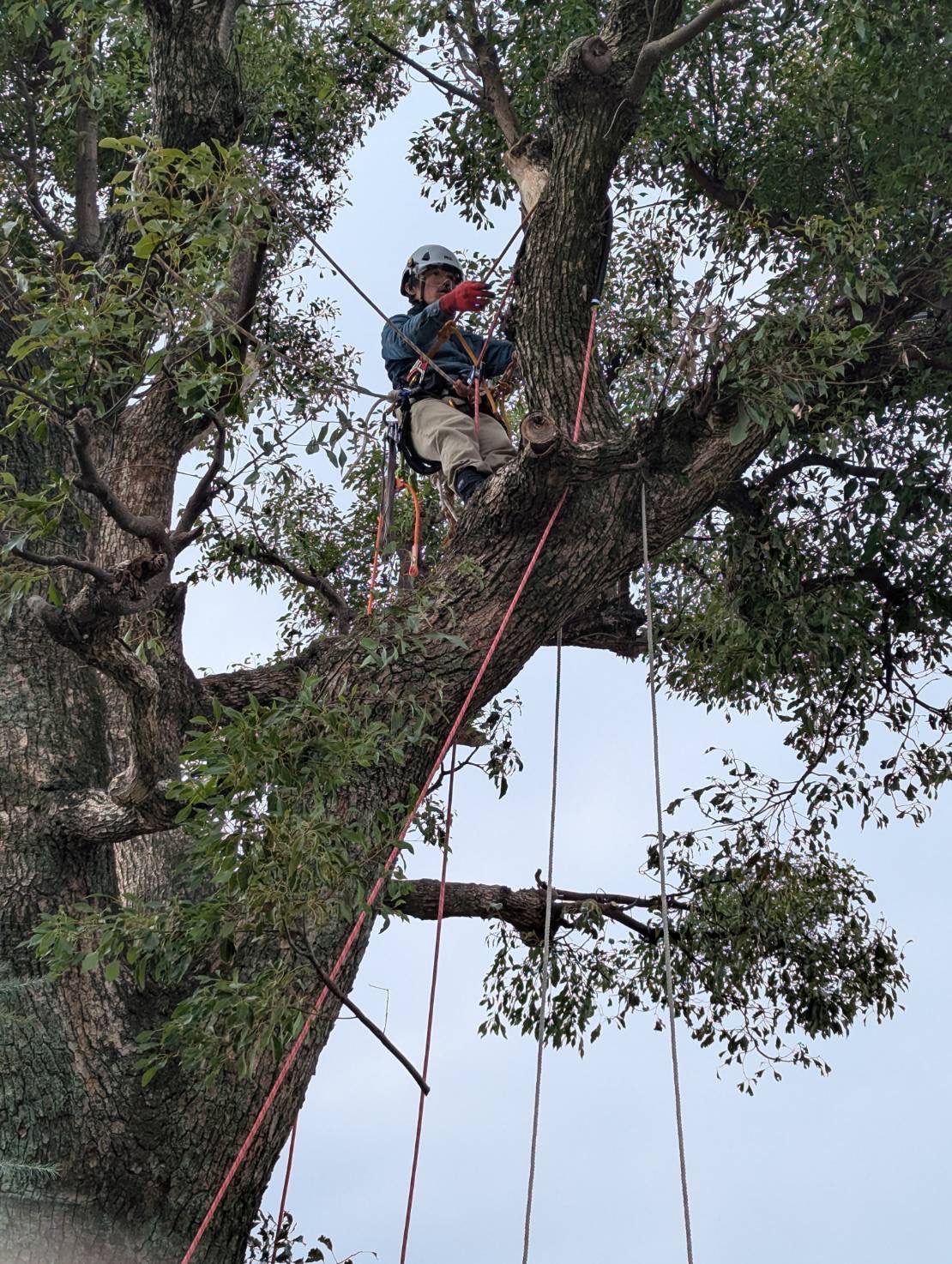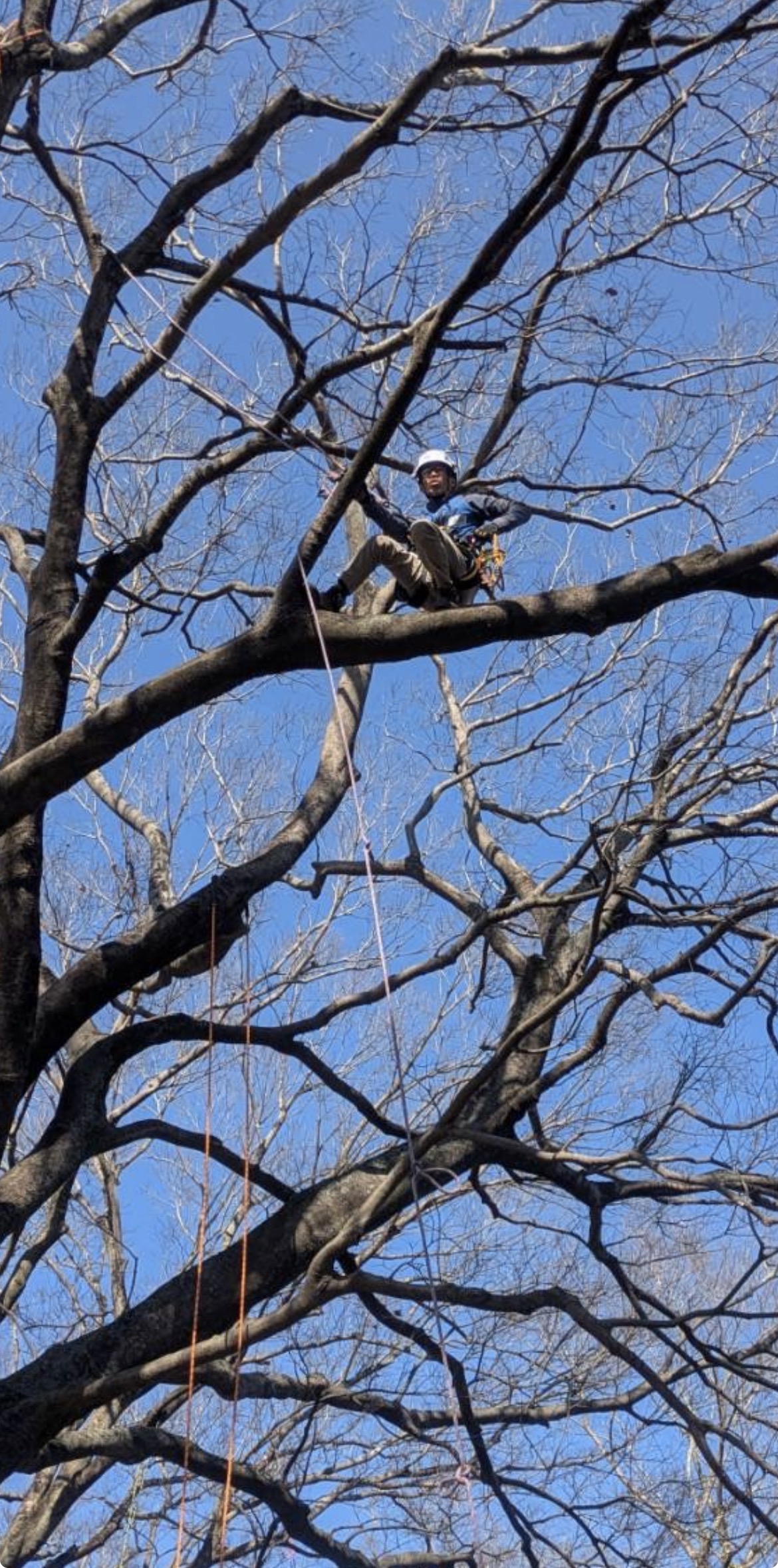 二階の屋根を超える高さの樹木に登り伐採作業です。伐採における樹木上作業の研修とツリークライミングの資格を取得して仕事に活用しています。まだまだ不慣れは点が多く安全を考えるとどうしても時間がかかってしまいます。しかし事故を […]